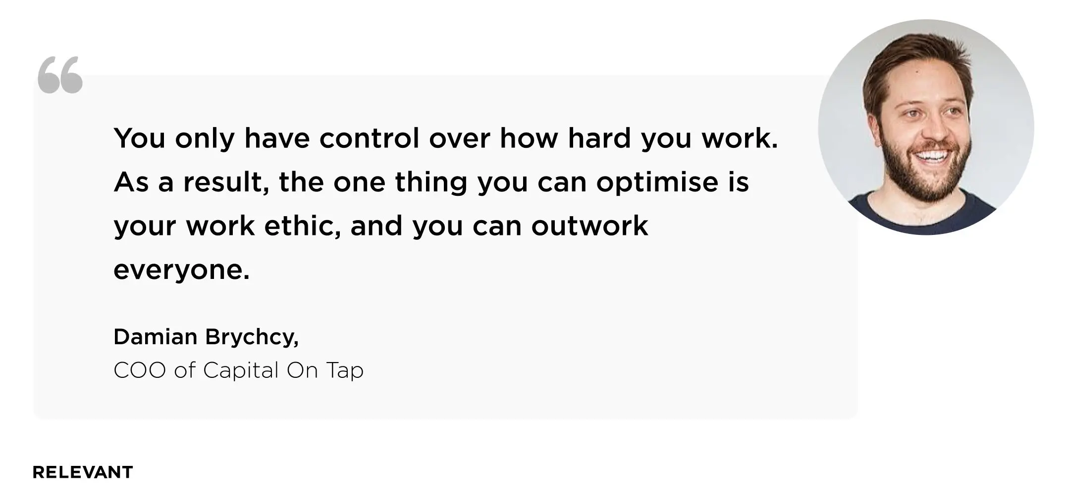 There’re many events, such as geopolitical events, market events, and product changes and you have no influence over them. What you can control, though, is how hard you work and who you work with. Surround yourself with amazing individuals who all work really hard and you will maximise your odds of success.
