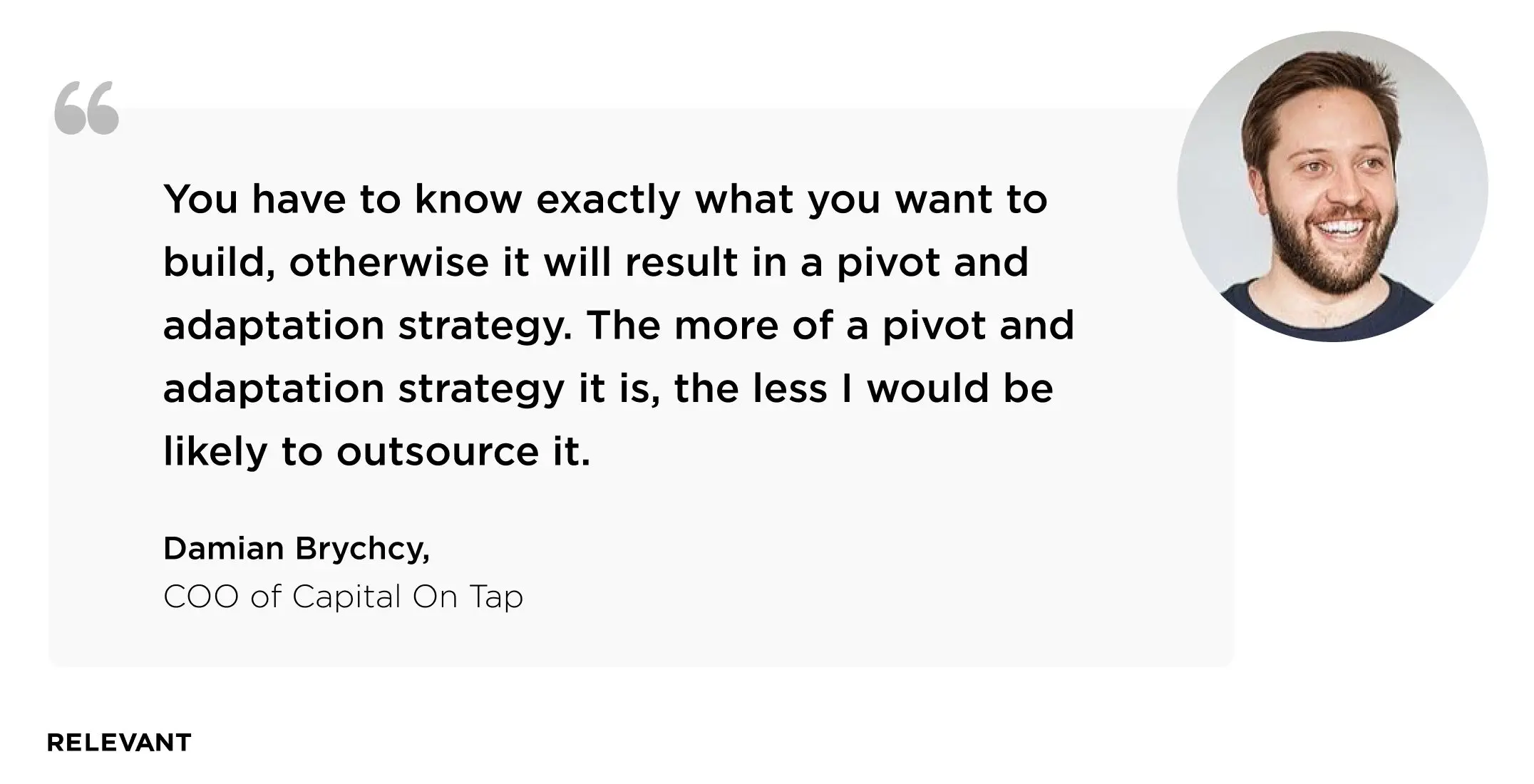 “You have to know exactly what you want to build, otherwise it will result in a pivot and adaptation strategy. The more of a pivot and adaptation strategy it is, the less I would be likely to outsource it.