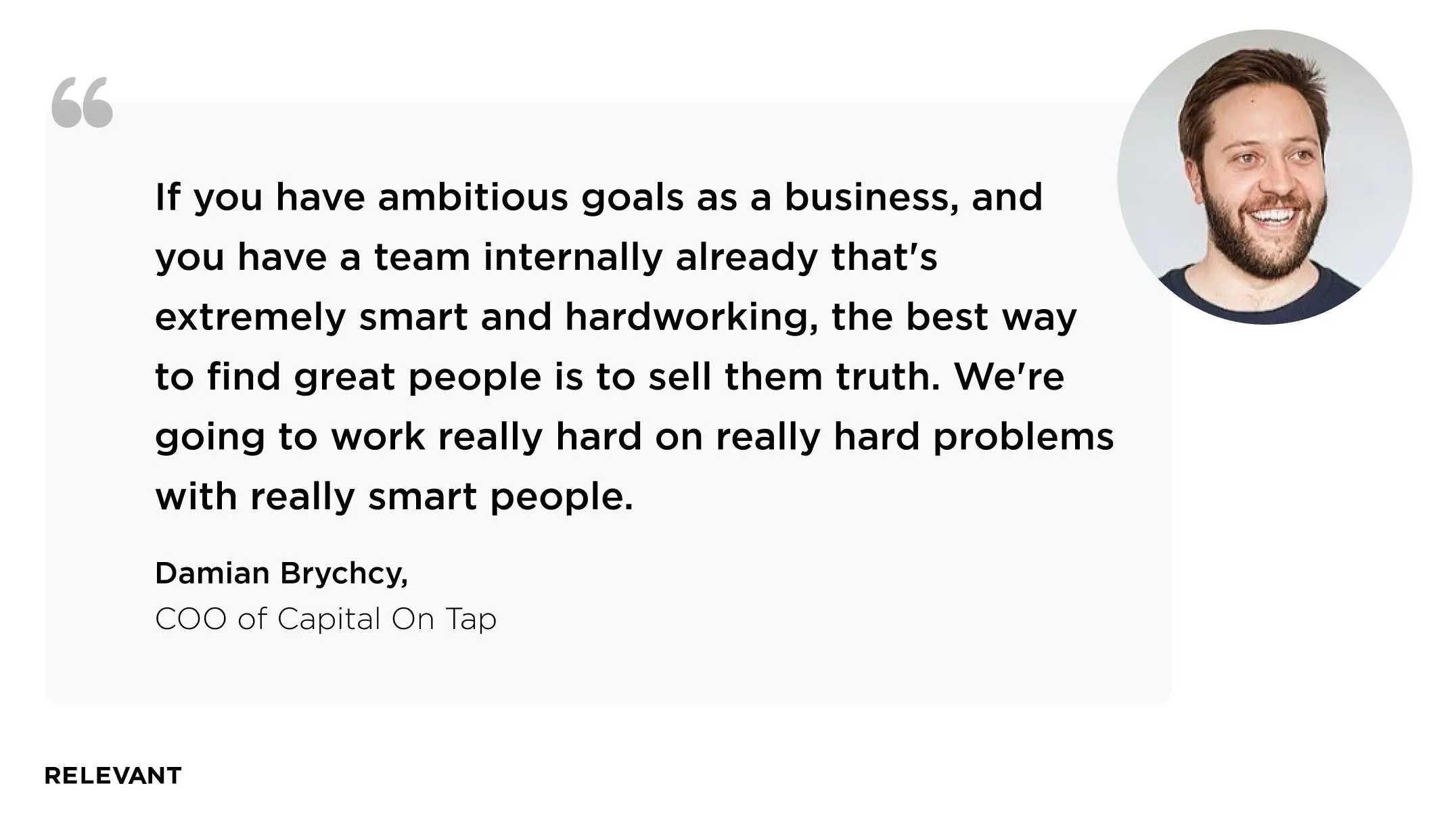 “If you have ambitious goals as a business, and you have a team internally already that’s extremely smart and hardworking, the best way to find great people is to sell them truth. We’re going to work really hard on really hard problems with really smart people.”