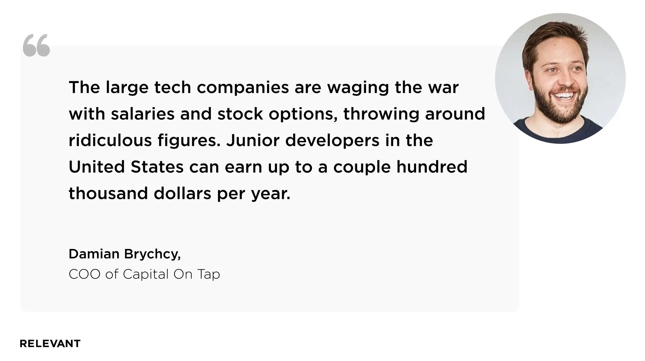 “The large tech companies are waging the war with salaries and stock options, throwing around ridiculous figures. Junior developers in the United States can earn up to a couple hundred thousand dollars per year.”