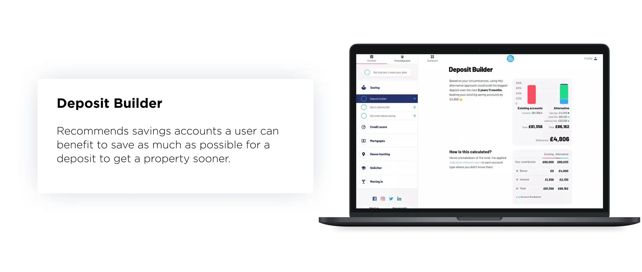 - Deposit builder allows users to save as much as possible to get the property sooner