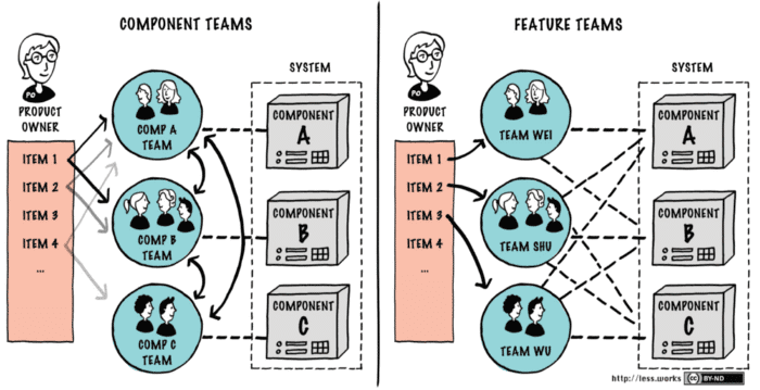 While the feature teams bank on the efficiency of an agile team structure, the component teams can contribute greatly to ensuring technical integrity. The components the latter produce can also be reused, allowing the project to save some money.