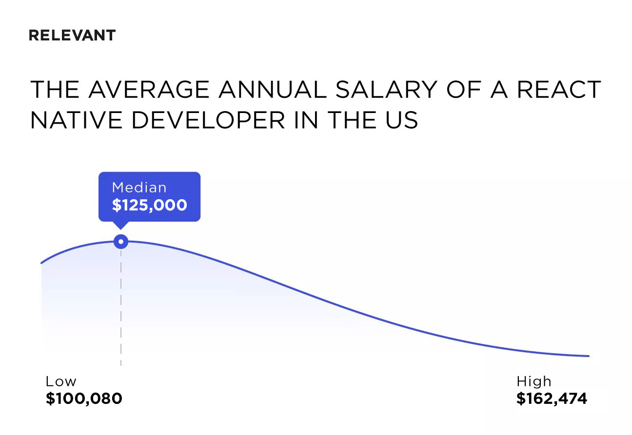 | The average annual salary for a React Native developer | $40,000 | $78,000 | $125,000 |